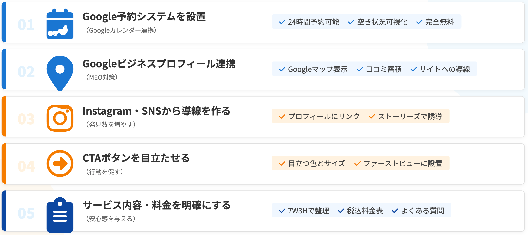 集客できるようになるには、5つのポイントが大切です。
