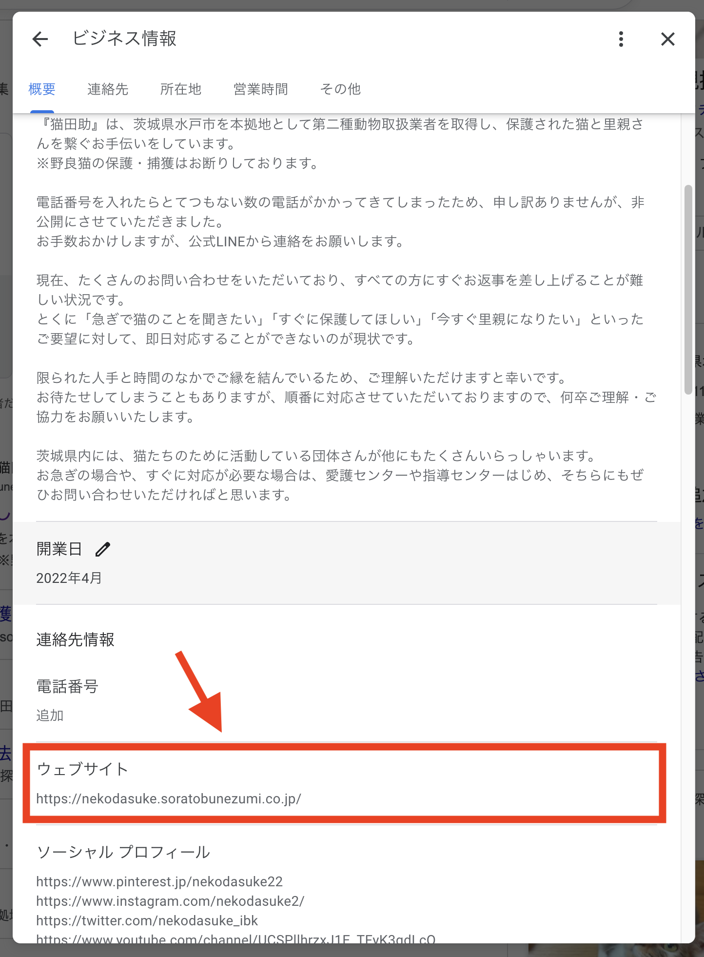GoogleビジネスプロフィールにホームページURLを設定