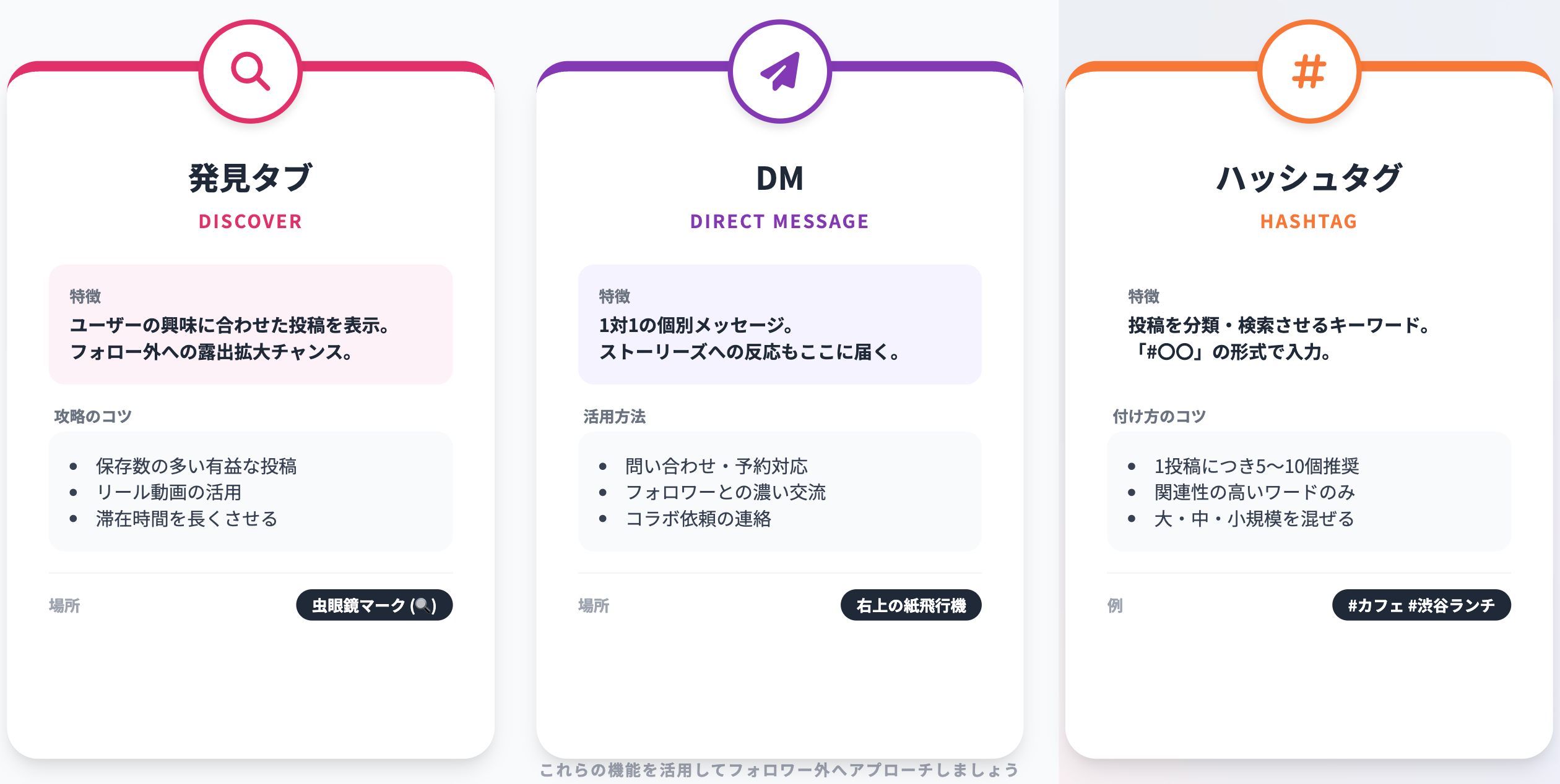 詳しくは「Instagramのビジネスアカウント作成方法」をご覧ください。 - フォロワーを増やすコツは?