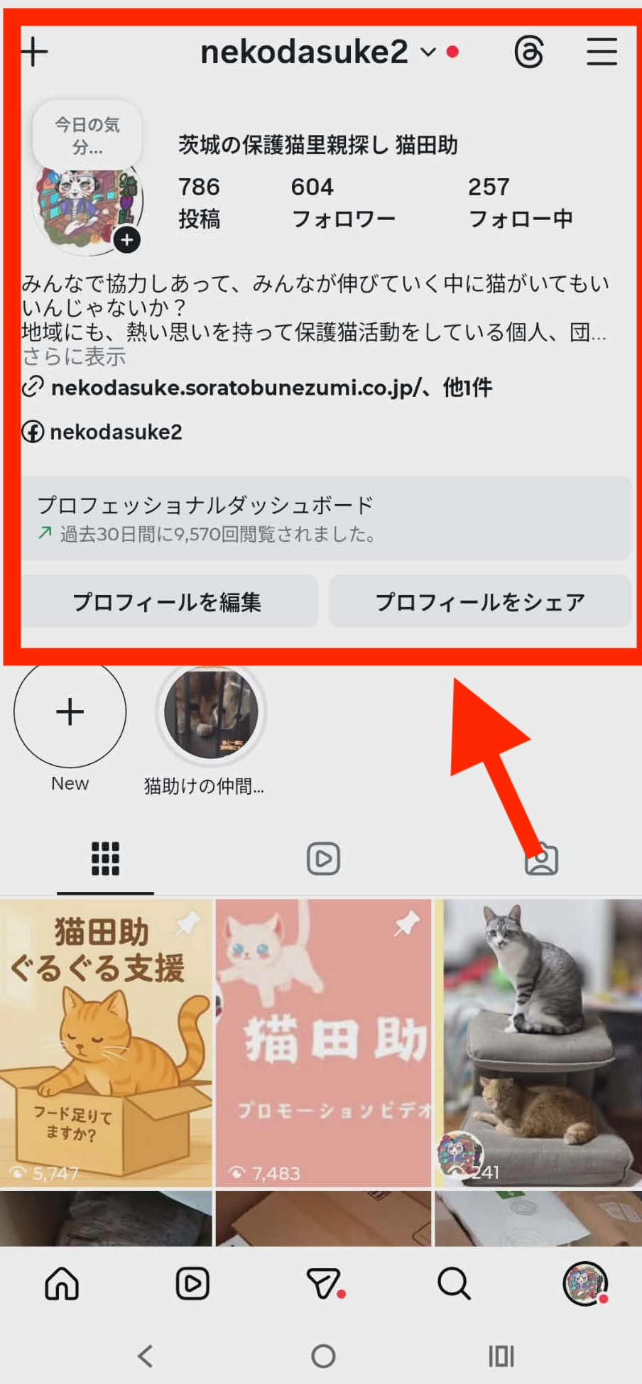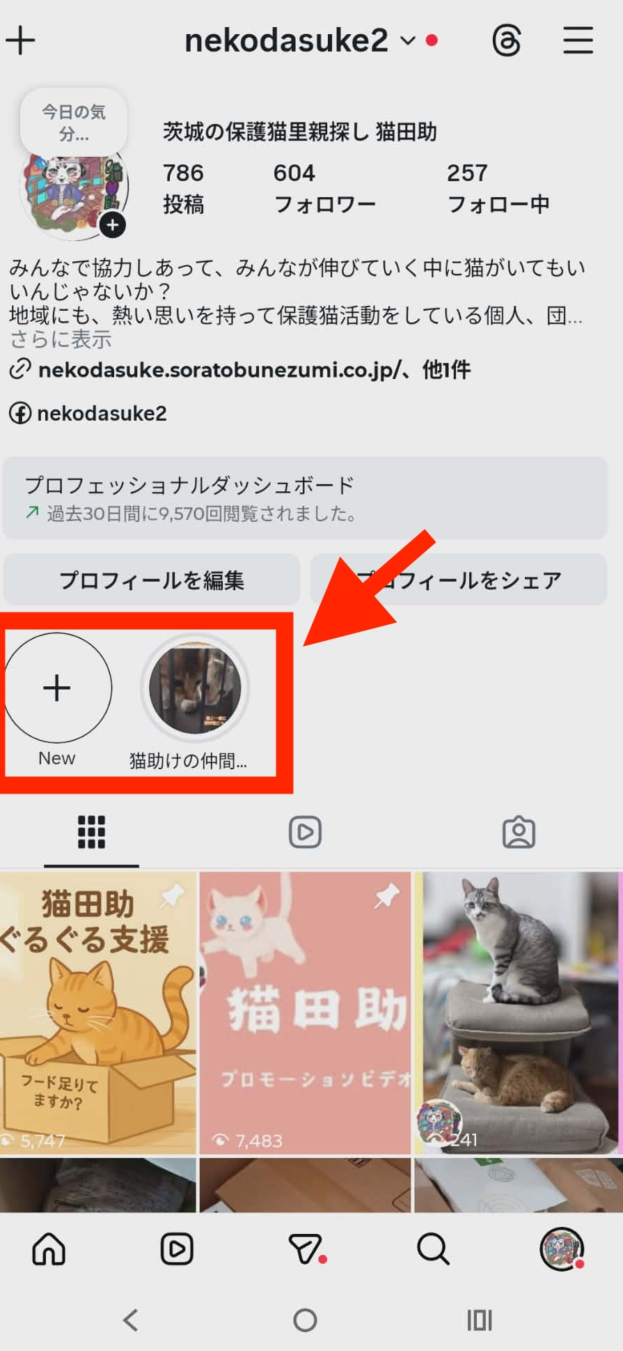 ストーリーズは24時間経つと消えてしまいますが、ハイライトを設定するとプロフィールに固定され、24時間後も閲覧することができます。